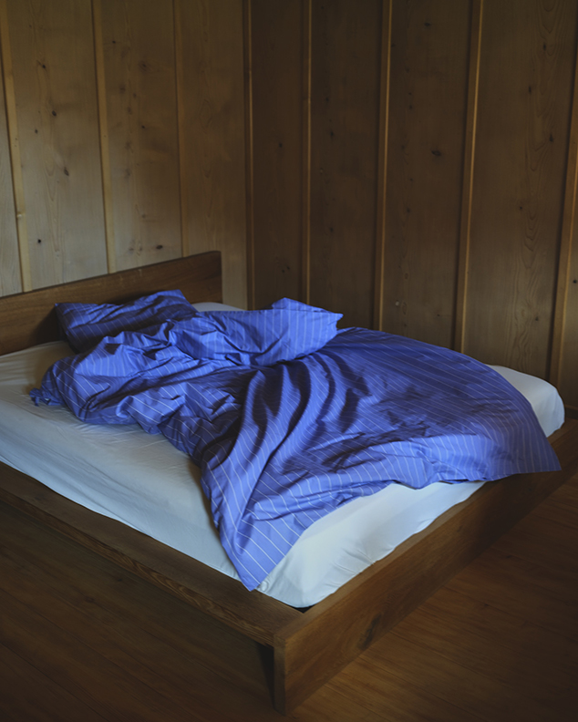 Die Bettwäsche- und Heimtextilienkollektion von Tekla vor der mystischen Kulisse des Schwarzwaldes, mit dem BFH1650® als Hintergrund.